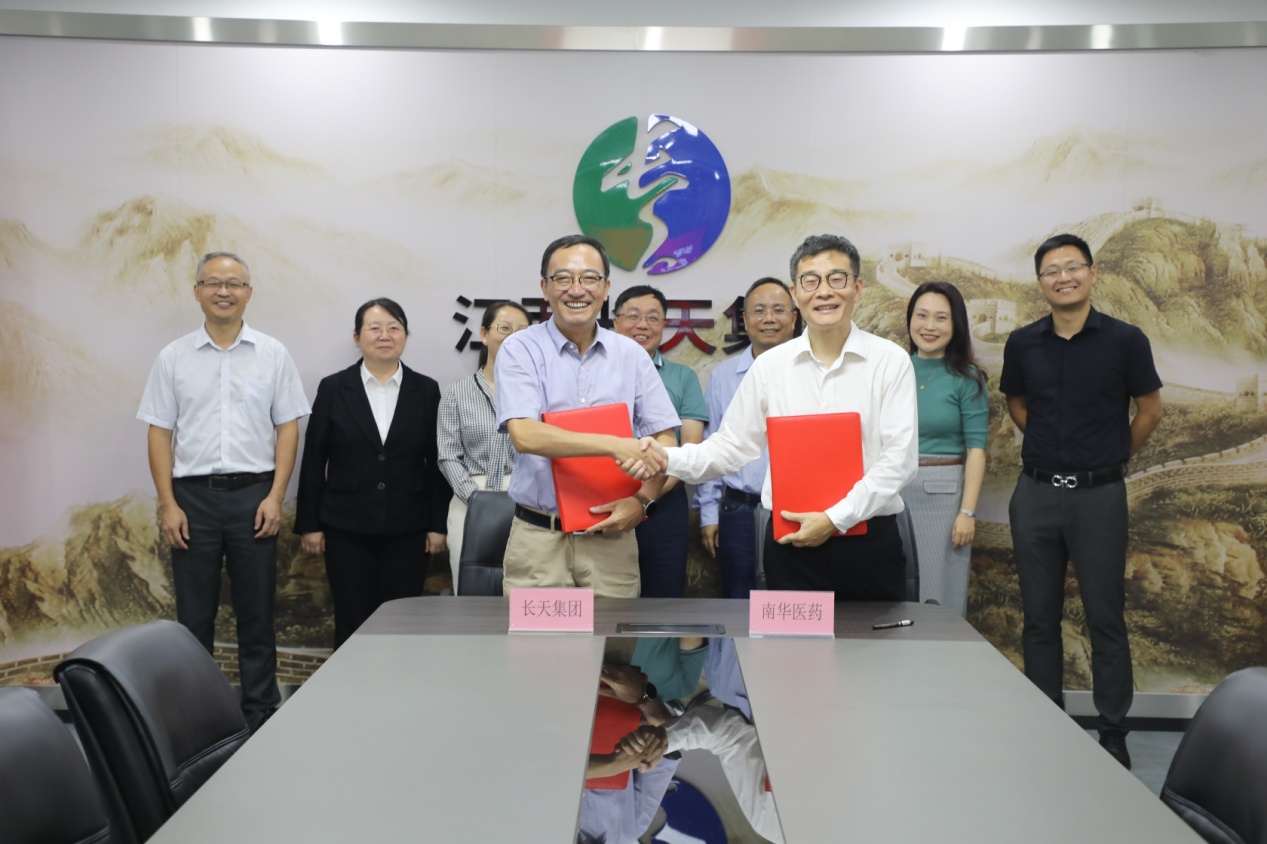長天集團黨委副書記、總經(jīng)理江春林,黨委委員、財務總監(jiān)羅鵑,黨委委員、紀委書記霍井路,監(jiān)事會主席曾金應,南華醫(yī)藥總經(jīng)理、黃慶仁棧華氏大藥房董事長陶躍萍,南華醫(yī)藥副總經(jīng)理王麗芳及雙方有關部門負責同志參加簽約儀式。